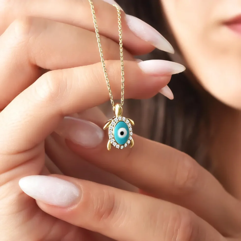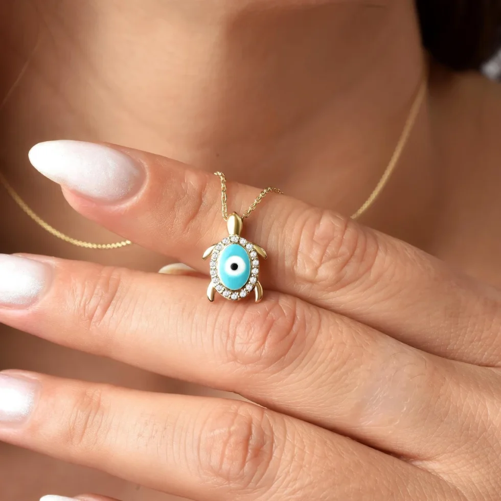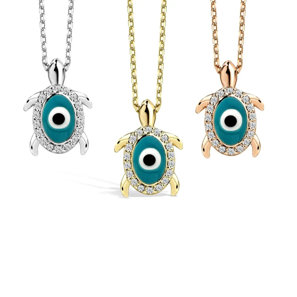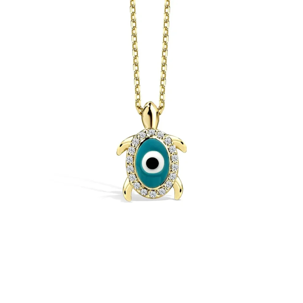 This unique turtle necklace features an evil eye charm, adorned with sparkling diamonds for a touch of elegance. Crafted from 14K solid gold, the pendant showcases a beautifully encircled evil eye, symbolizing protection and positivity. Representing the peace of the sea and the longevity of turtles, this piece is perfect for those who seek both style and spiritual significance. It’s a versatile accessory that adds charm to everyday wear while bringing positive energy. A wonderful choice for a thoughtful gift!