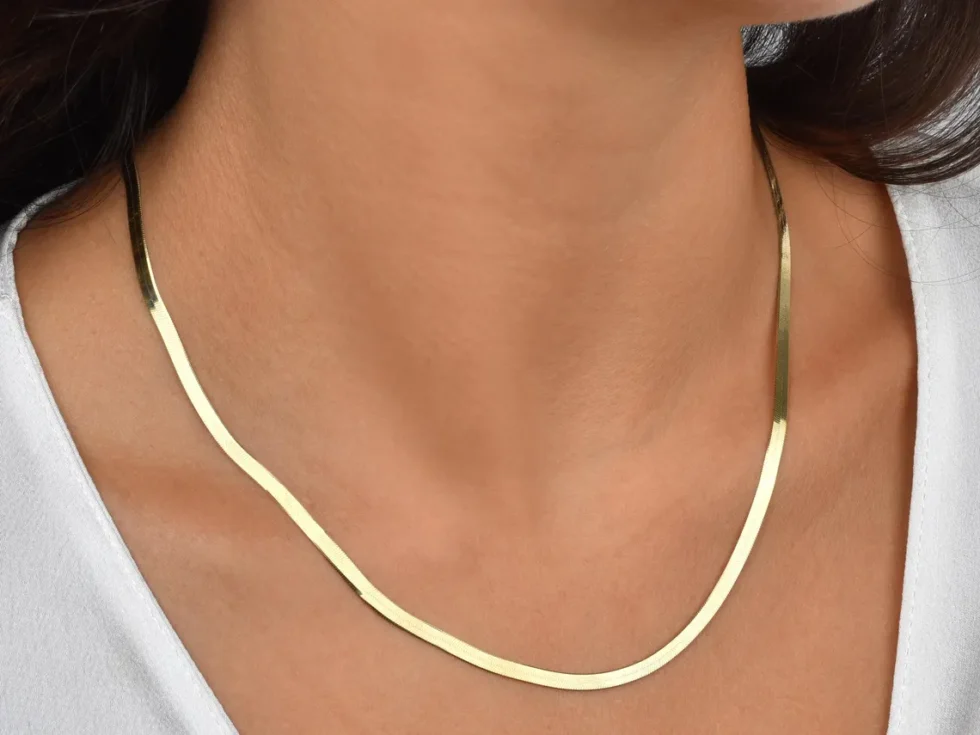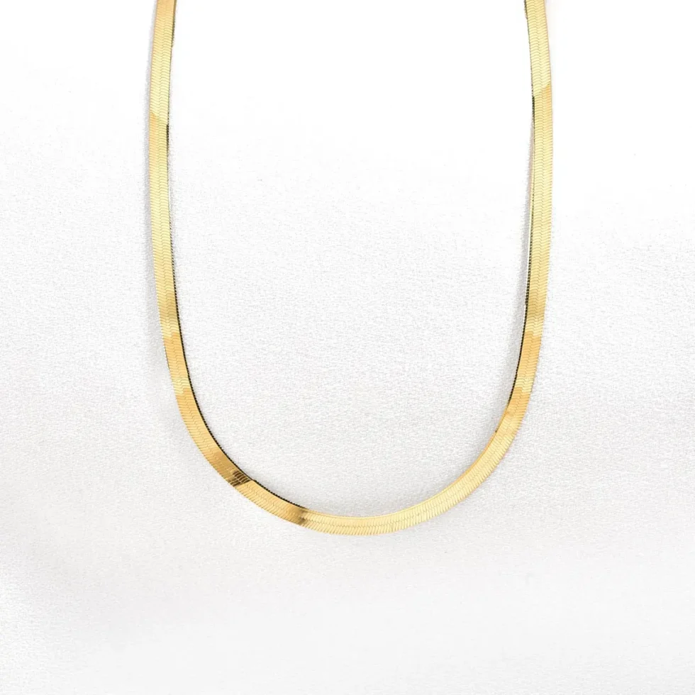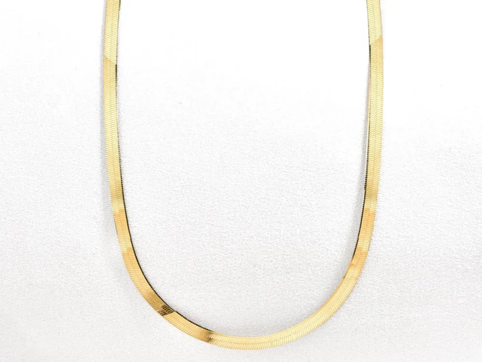 14K Gold Herringbone Necklace, Gold Herringbone Chain Choker, Flat Gold Chain Necklace, Simple Gold Chain Necklace, Herringbone Chain Gift