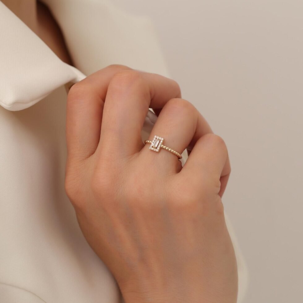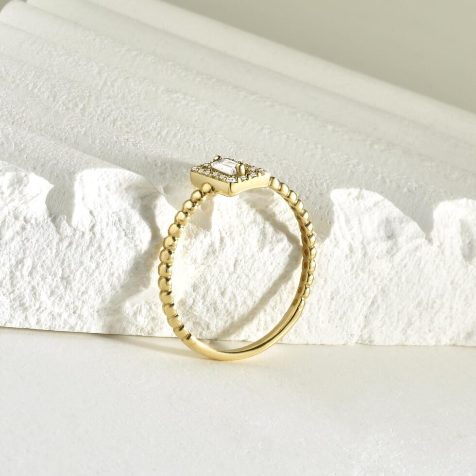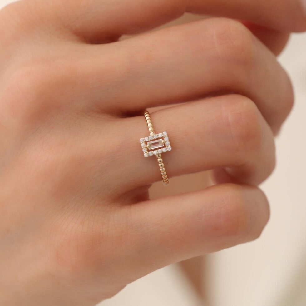 14K Gold Minimalist Ring with 0.20ct Baguette and Round Diamonds