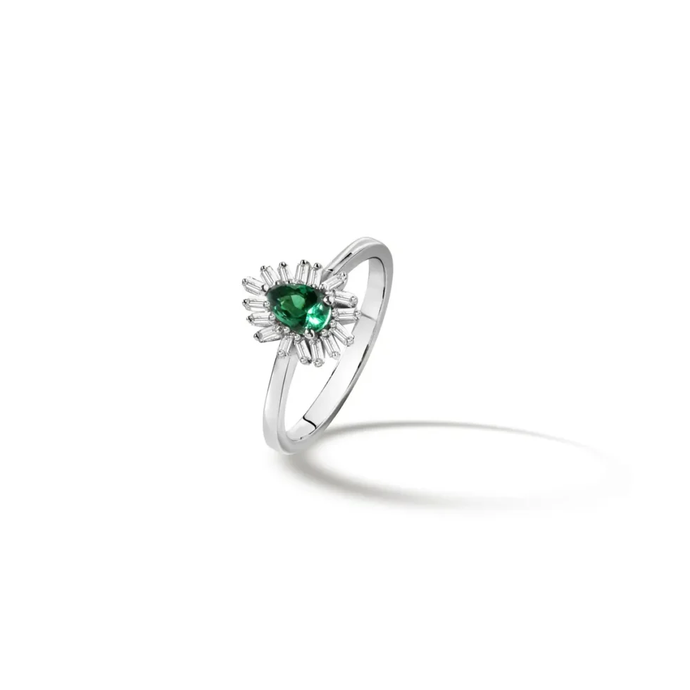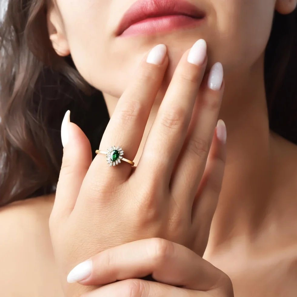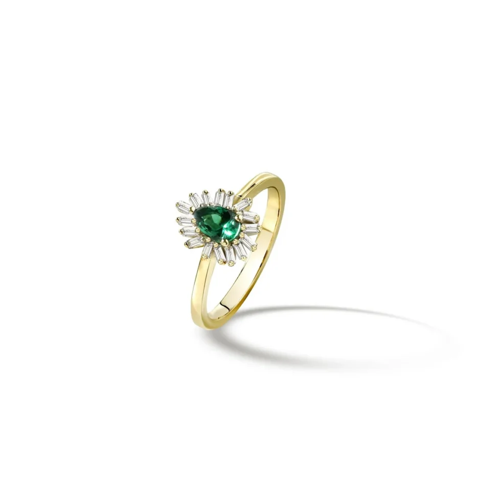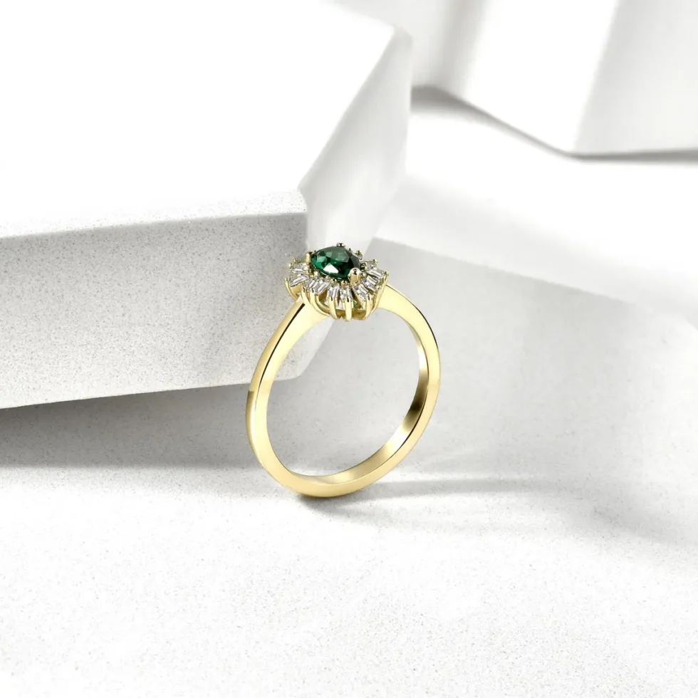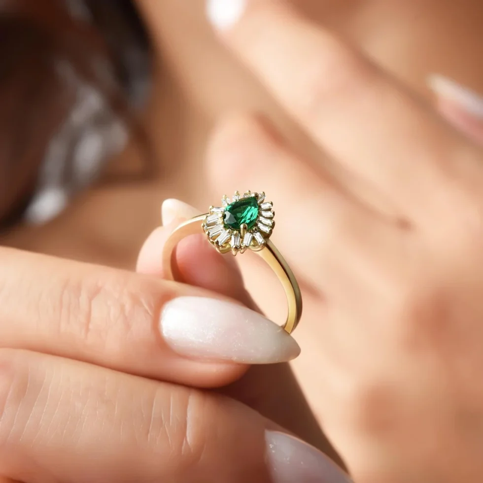 14k Real Solid Gold Emerald and Baguette Ring/Dainty Engagement Ring/Thin Emerald Ring/Emerald Promise Ring/14K Solid Gold Real Diamond Ring