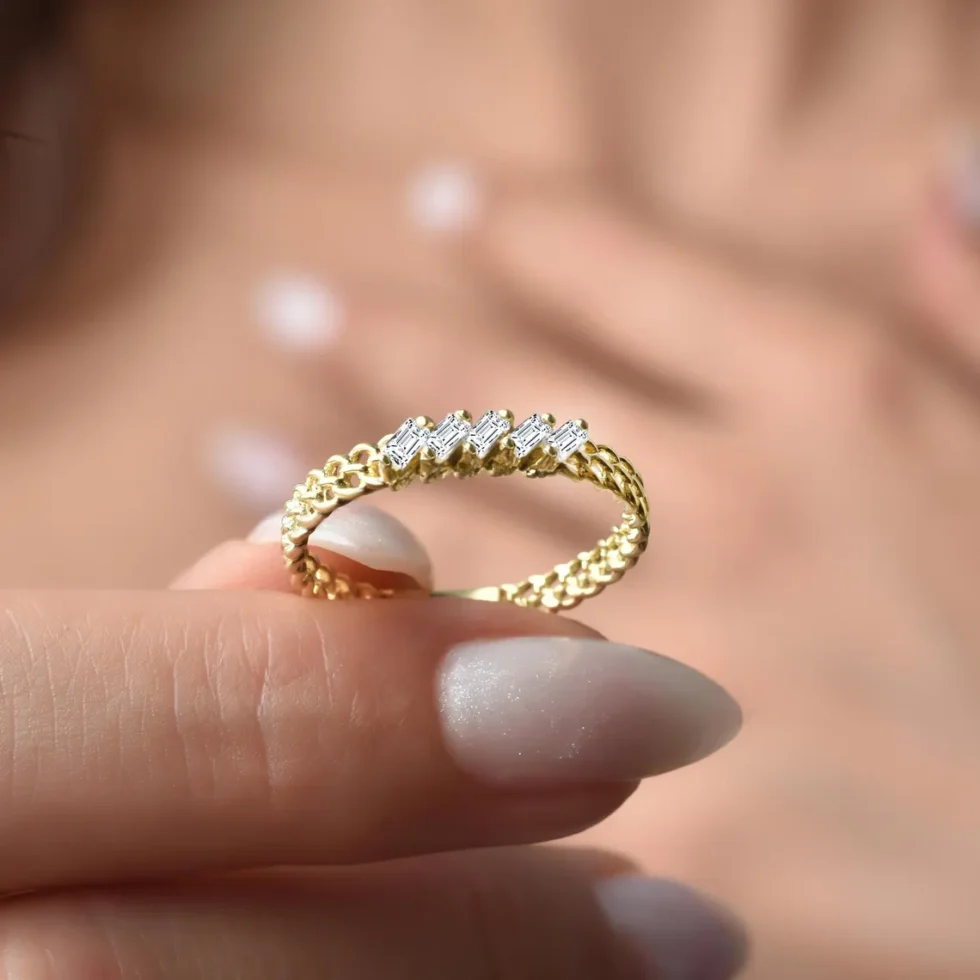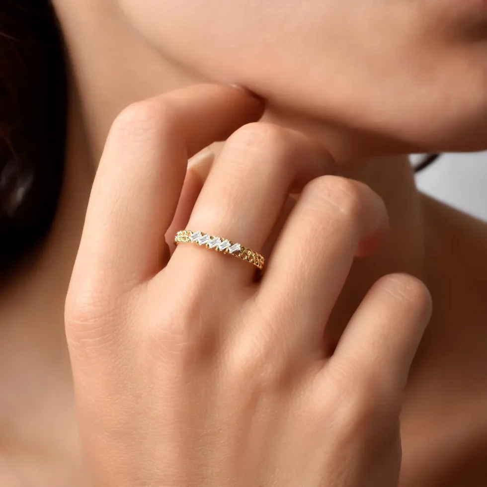 14k Solid Gold Baguette Diamond Wedding Band / Baguette Diamond Ring / 2.8 MM Width Petite Dainty Baguette Diamond / Diamond Wedding Ring