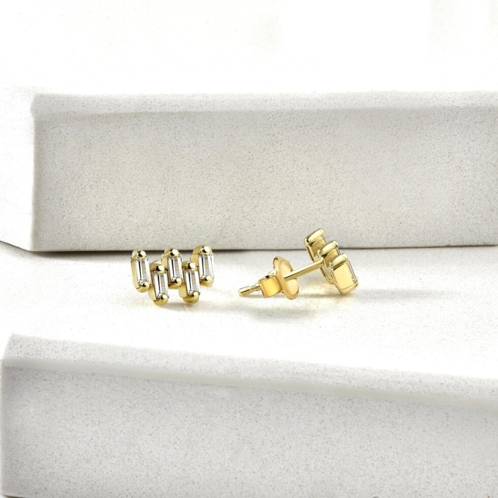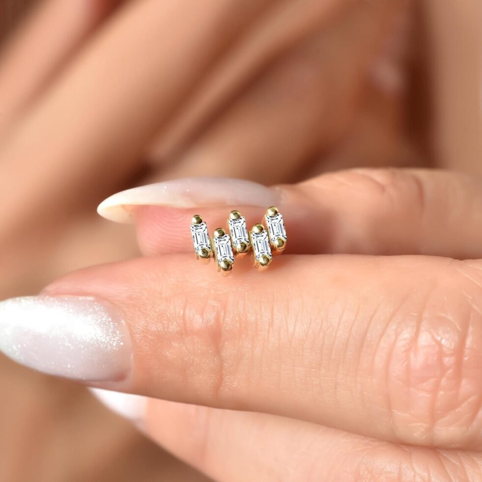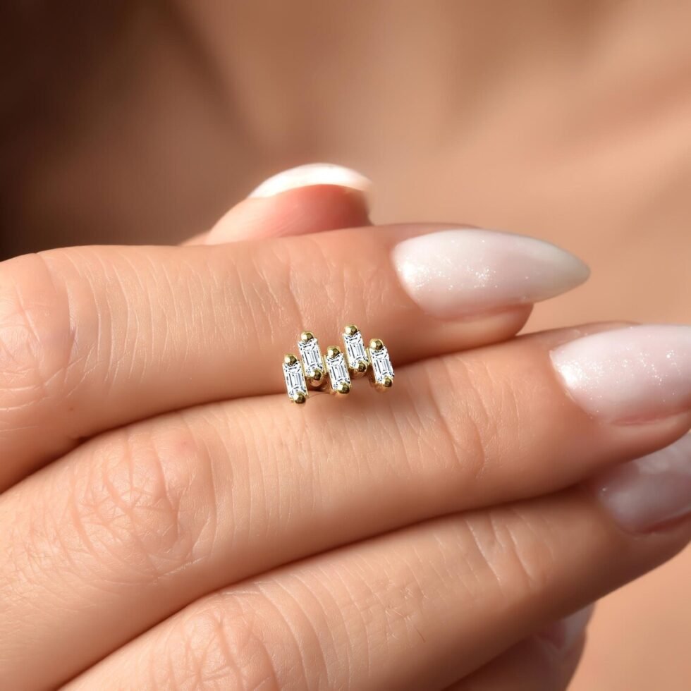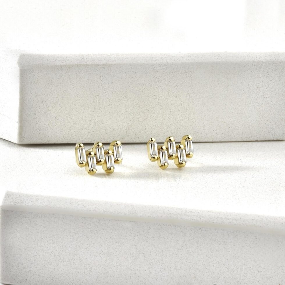 Baguette Diamond Stud Earrings in 14K Gold – Stunning Natural Diamond, Unique Shape Baguette Diamond Earrings