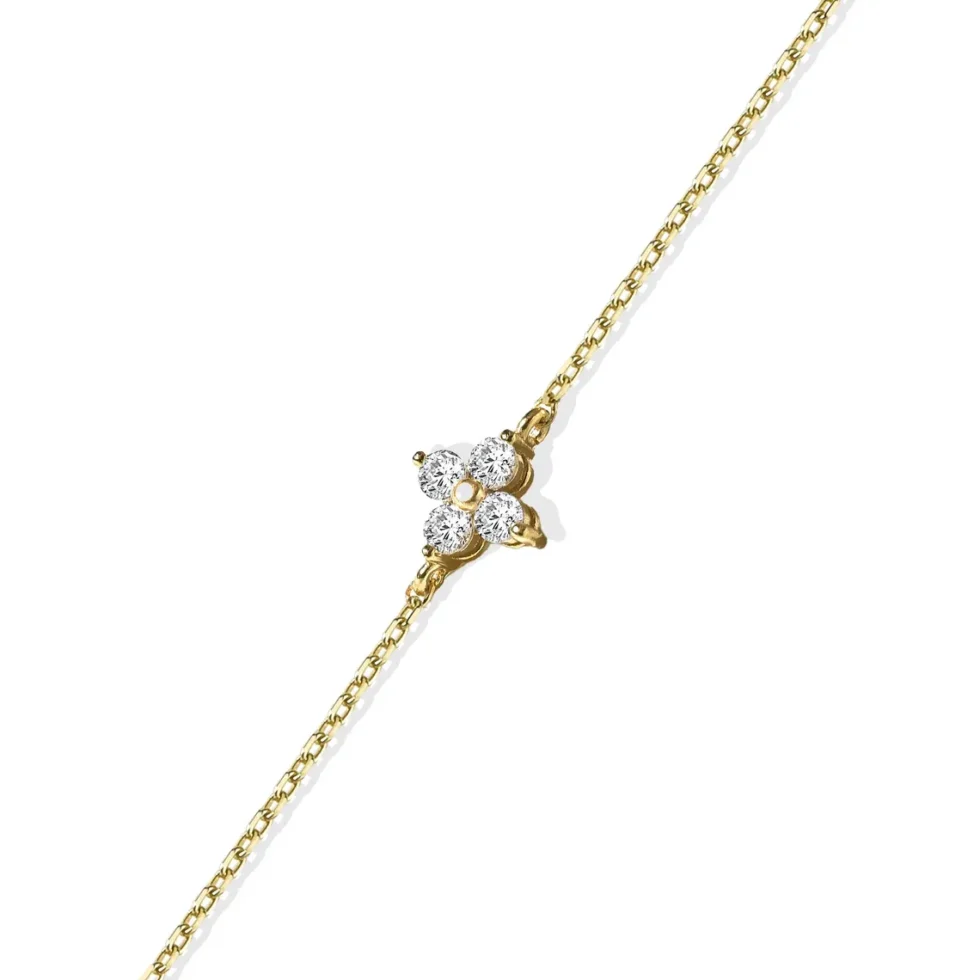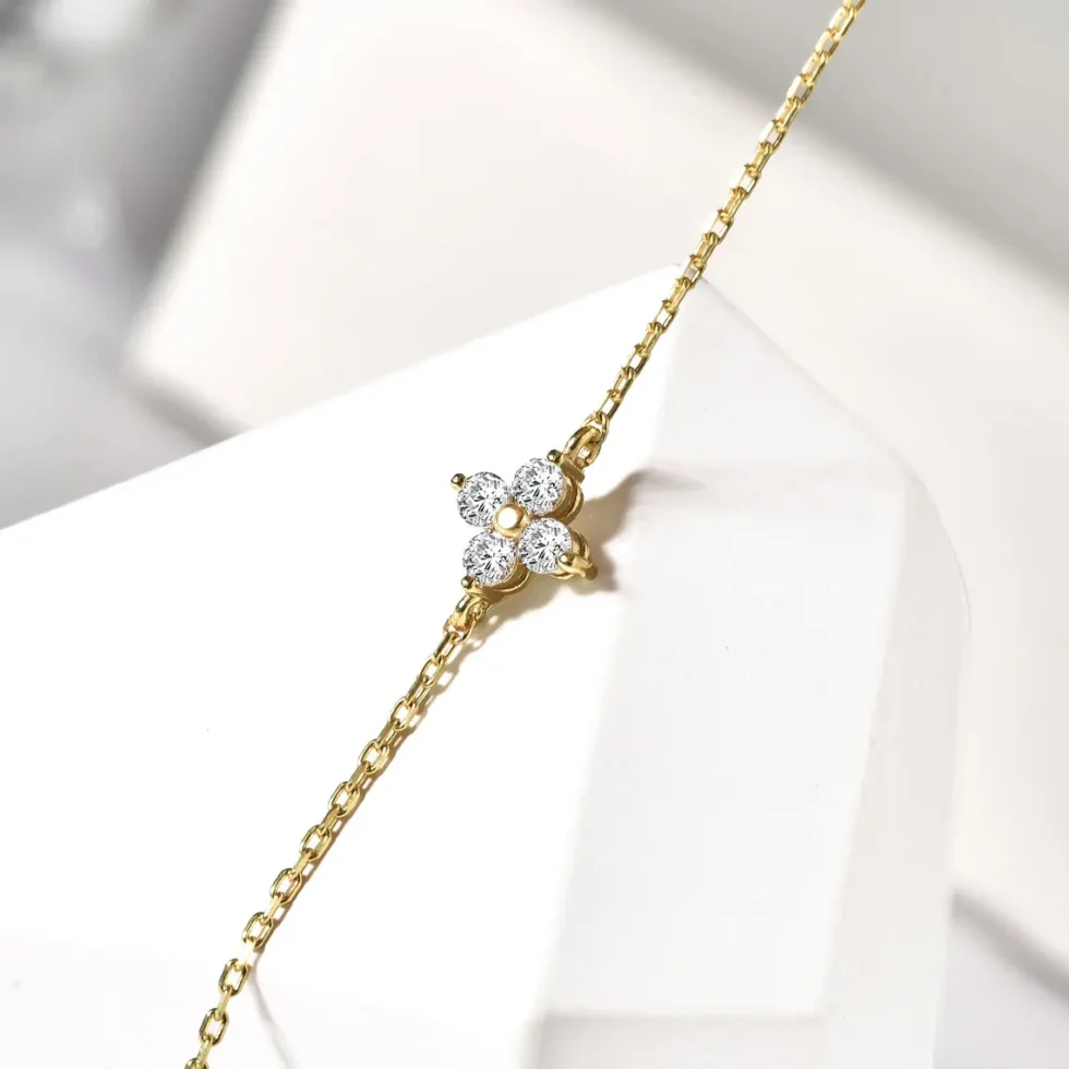 Diamond Clover Chain Bracelet with 14K Solid Gold, Diamond Cluster Bracelet, Diamond Flower Bracelet, Four Leaf Clover Diamond Bracelet
