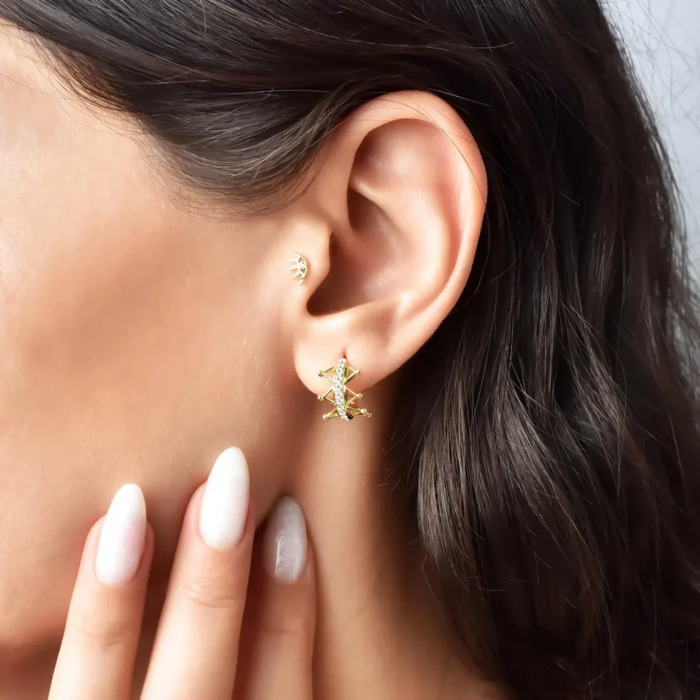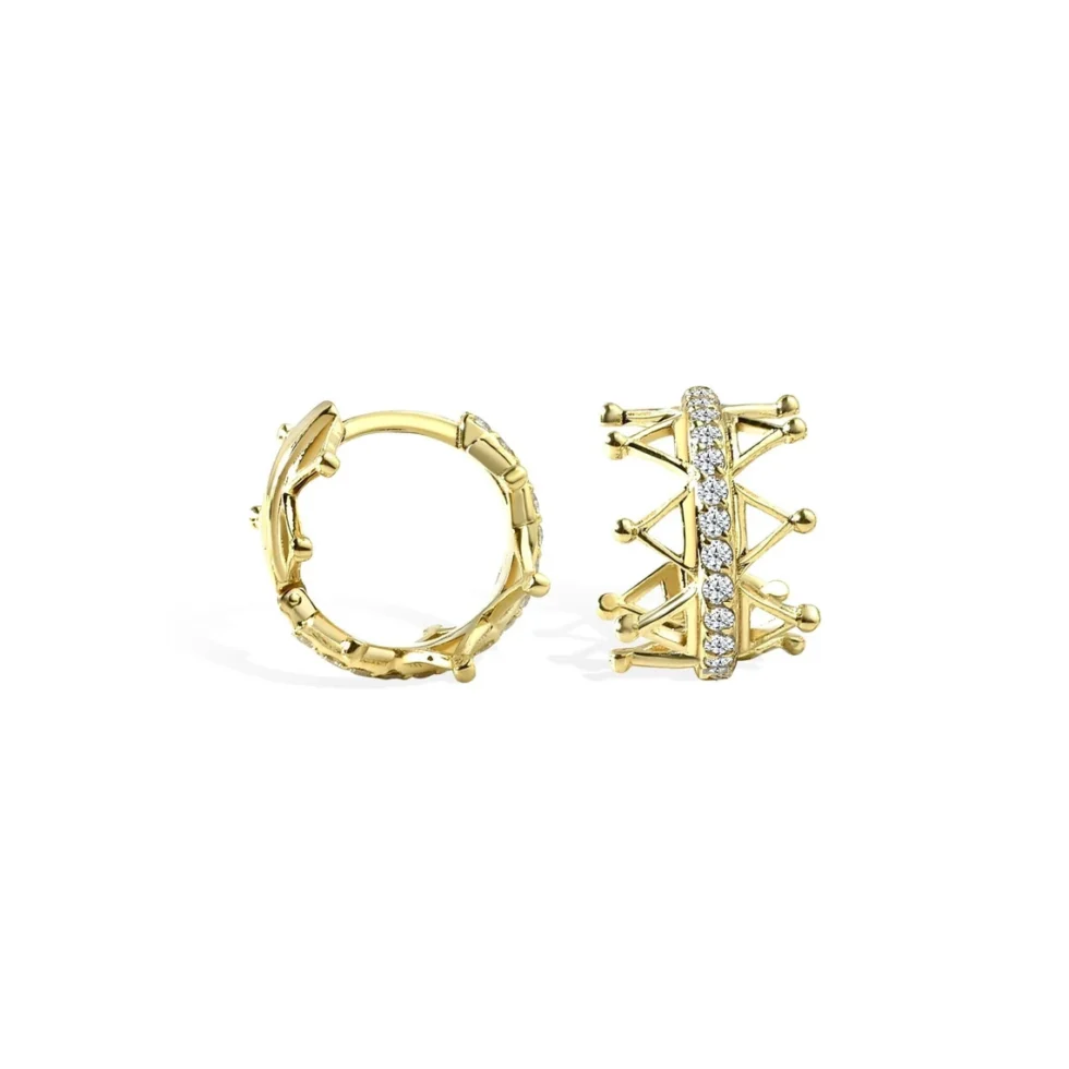 Diamond Huggie Earrings in 14K Gold with Baguette Diamonds