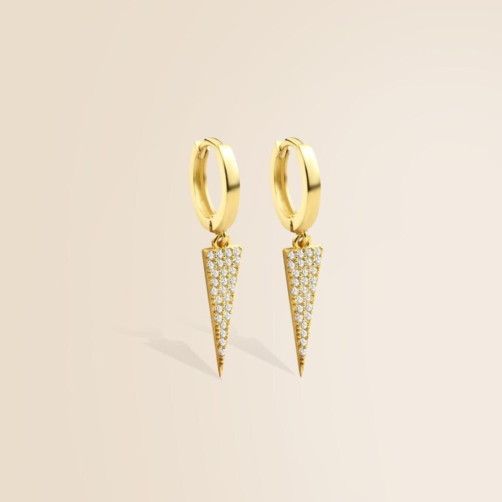 14K Solid Gold Diamond Paved Triangle Dangle Hoop Earrings