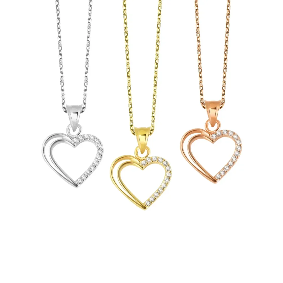 Genuine Natural Diamond Heart Necklace in 14K Gold – Bridal Heart Shaped Pendant, High Quality Open Heart Necklace for Mom, Diamond Gift