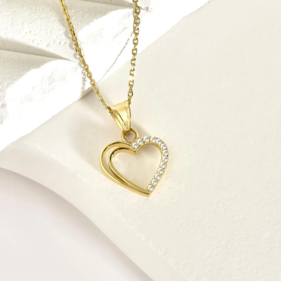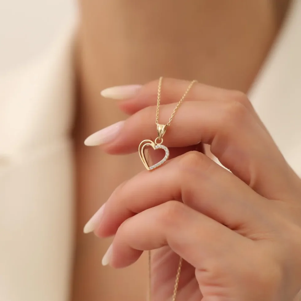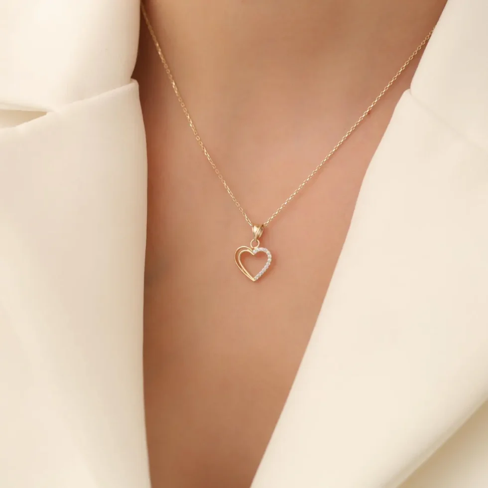 Celebrate love with this elegant 14K gold heart necklace, featuring a delicate Italian chain and sparkling diamonds. The heart-shaped pendant symbolizes deep affection and grace, making it a perfect expression of love.