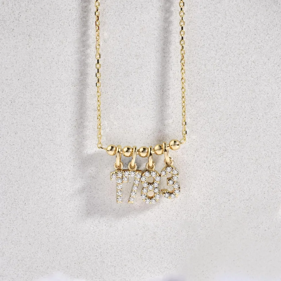 Look no further than this stunning Custom Number Necklace for your personalized gift needs! Crafted from 14K gold and adorned with exquisite diamonds, this necklace features a delicately engraved charm, perfect for marking a special date or occasion. Ideal for anniversaries, birthdays, or other significant moments, this piece brings an unexpected layer of timeless elegance.