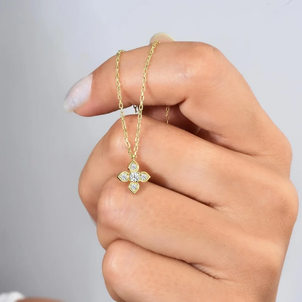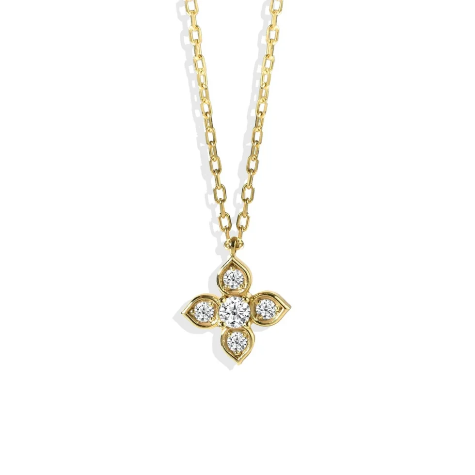 This stunning 14K gold clover necklace features a delicate design with sparkling diamonds set in each leaf, symbolizing luck and positive energy. With its minimalist lines and timeless elegance, this piece adds a subtle touch of sophistication to your everyday look and makes a captivating statement on special occasions. Perfect as a meaningful gift for a loved one or a beautiful addition to your own collection, this necklace brings a hint of luxury and charm to any outfit. Treat yourself or someone special to this lucky clover necklace and let it light up every moment with brilliance!