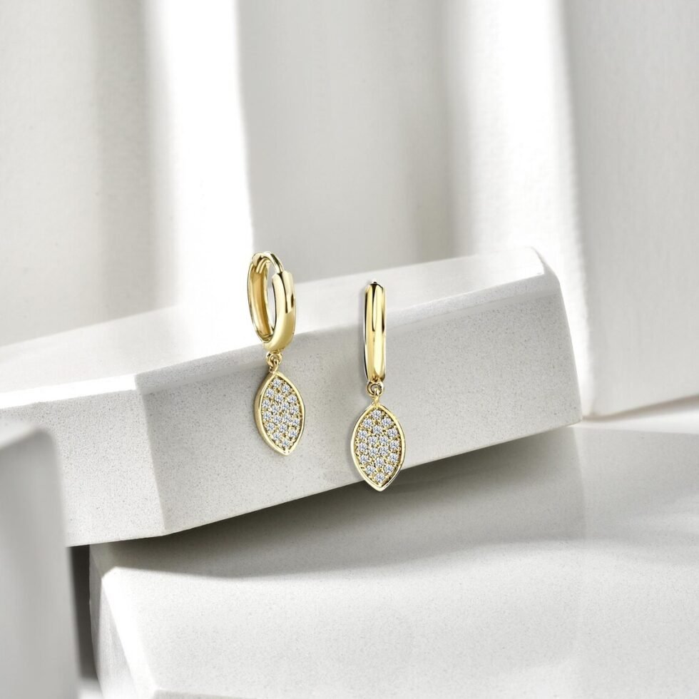Enhance your everyday style with these elegant gold earrings that exude sophistication! Featuring a huggie design with a dazzling marquise-shaped diamond cluster drop, these earrings strike the perfect balance between minimalism and luxury. Ideal for those who love subtle yet striking details, these earrings catch the light beautifully, ensuring you stand out in any setting. Whether for everyday wear or special occasions, you’ll feel like royalty every time you put them on. These timeless gold diamond earrings are designed to be cherished for generations, earning you countless compliments along the way!