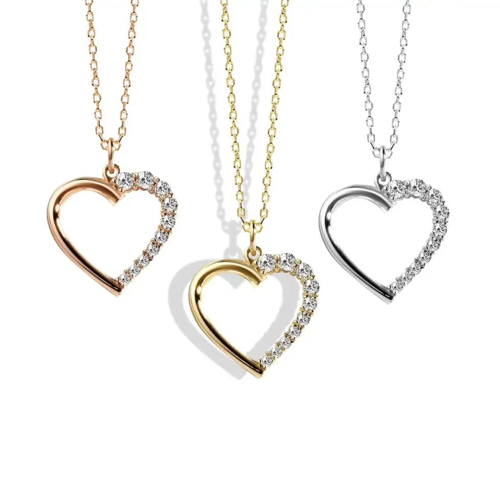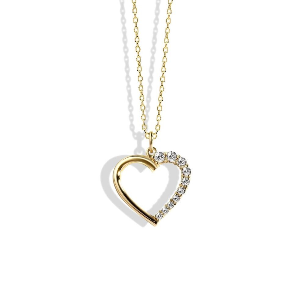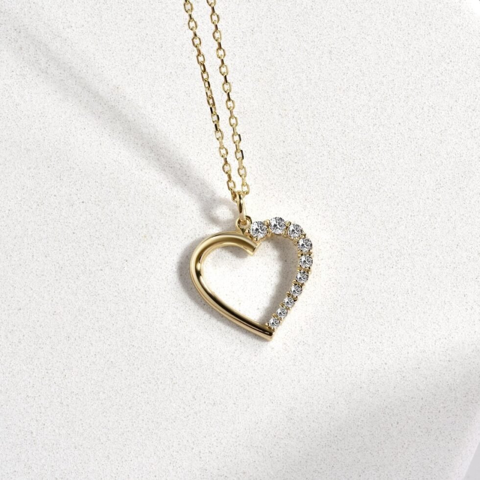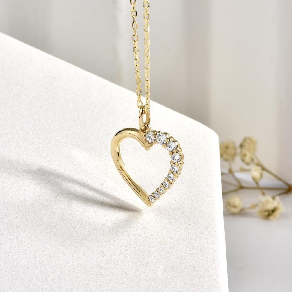 Tiny Heart Necklace in 14K Real Gold – 14K Gold Open Heart Pendant with Real Diamonds, Elegant Jewelry for Women